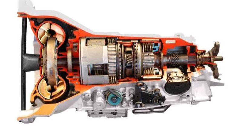 В автоматической коробке крутящий момент от двигателя полностью передается на гидротрансформатор, от которого распределяется за счет фрикционного сцепления определенных шестерен. Гидротрансформатор по форме напоминает стоящий на ребре тор, разрезанный по вертикали и погруженный в ATF.
