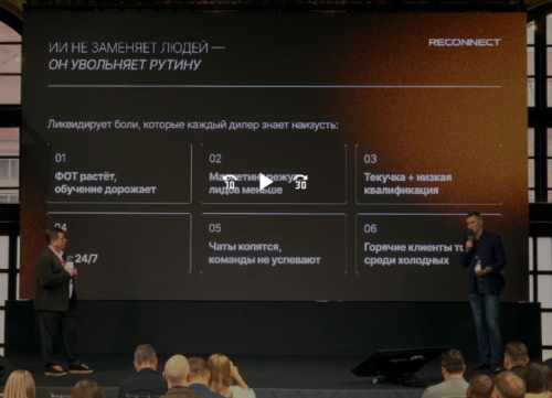 При этом ИИ не заменяет людей, комментируют специалисты, а «увольняет» рутину. Он ликвидирует «боли» дилеров, в том числе рост ФОТ и подорожание обучения, уменьшение лидов, текучку кадров, их низкую квалификацию и многое другое.