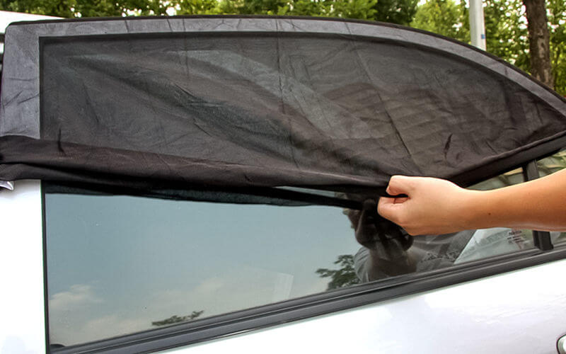 Ещё один действенный способ защиты авто заключается в использовании экранов или штор. Съёмный экран представляет собой жёсткий каркас с натянутой сеткой. Конструкция крепится к дверной раме с помощью магнитов. Встречаются экземпляры на присосках, которые прикрепляются к стеклу. За пару съёмных экранов автовладельцу придётся заплатить от 3000 руб.