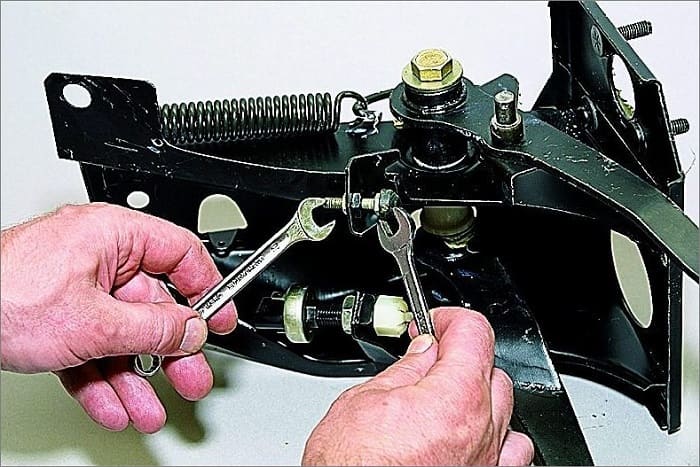 Иногда выдвижения штока рабочего цилиндра или натяжения троса не хватает для полноценного выжима. В этом случае потребуется регулировка привода сцепления.