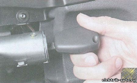 5 Далее необходимо нажать на защелки фиксирующие замок зажигания и потянуть его вперед.